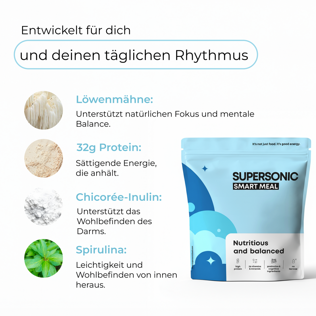 Das Urteil? Das ist eine ganz andere Geschichte. Dieses durchdachte Makro und die Zugabe funktioneller Inhaltsstoffe machen es zu einer echten, wirksamen Unterstützung im Alltagschaos. Es ist ein intelligentes Mahlzeiten-Upgrade für alle, die Wert auf Zeit und Gesundheit legen.“