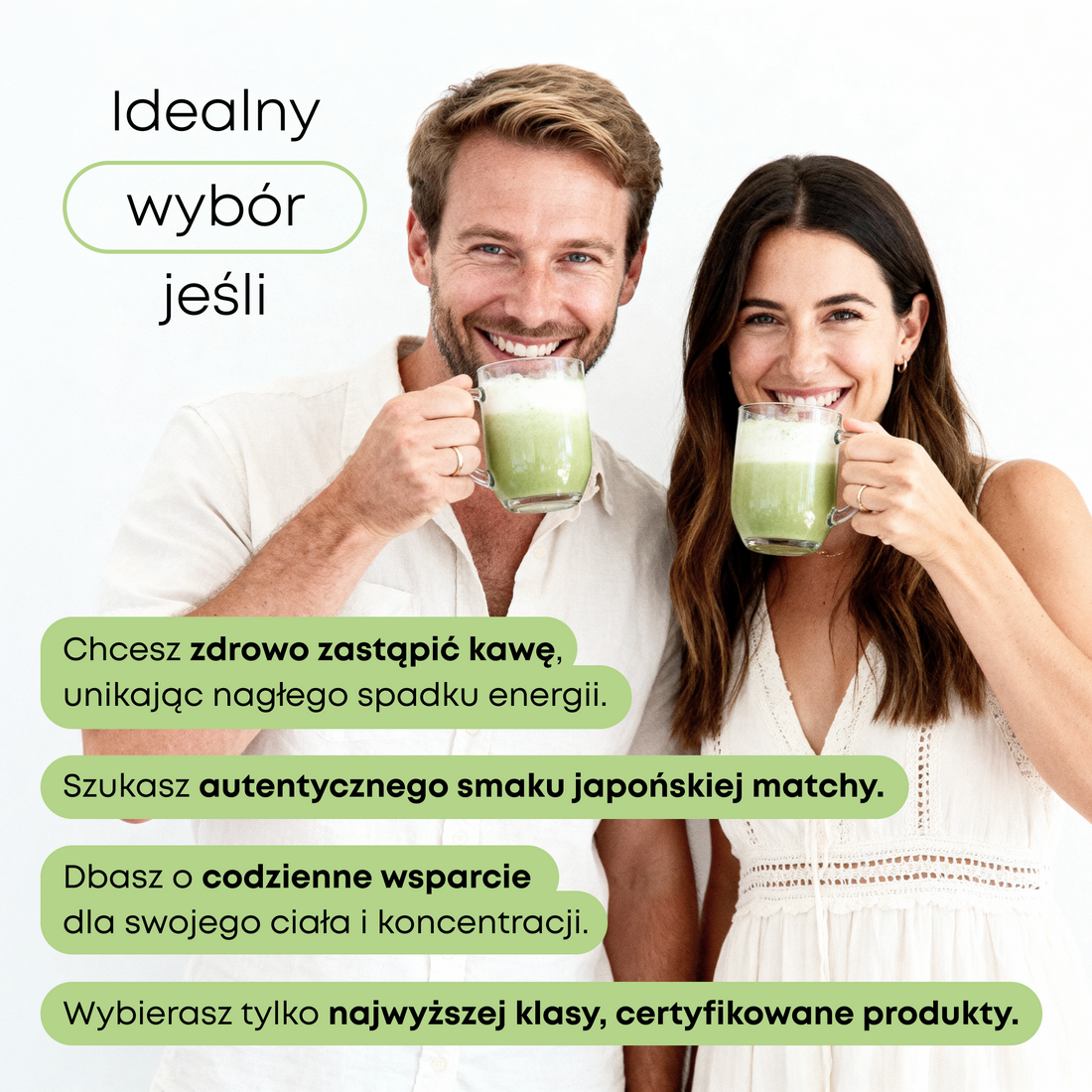 "Prawdziwa japońska matcha to zupełnie inny poziom. Synergia L-teaniny i kofeiny to biochemiczny fenomen, który pozwala osiągnąć dokładnie to, czegopotrzebuje mózg do pracy na najwyższych obrotach: czujność bez napięcia. To nie jest kolejny trend. To narzędzie do zarządzania swoją energią i umysłem.Polecam ją jako fundament porannej rutyny każdemu, kto chce myśleć jaśniej, działać skuteczniej i czuć się lepiej."