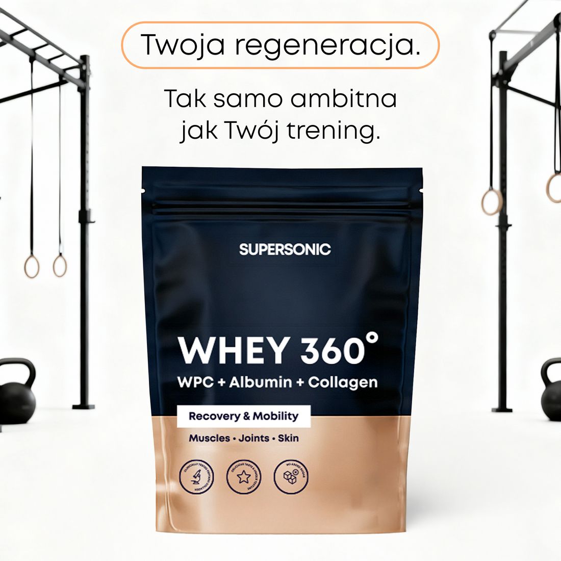 Dlatego tak cenię Whey 360°. To nie jest zwykły shake białkowy – łączy pełnowartościowy blend białek z kolagenem Peptan®, który wspiera cały aparat ruchu i przyspiesza regenerację.